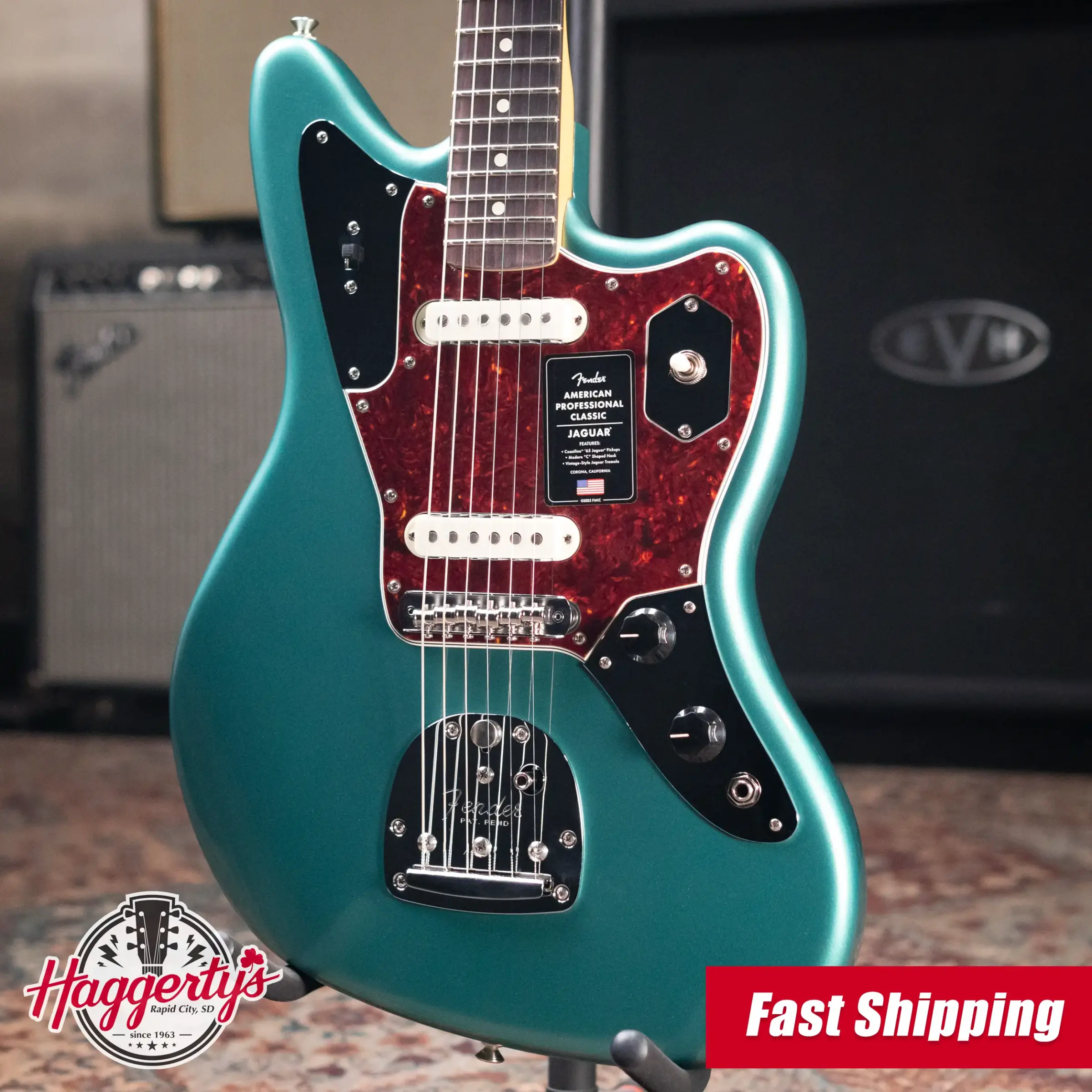 Fender American Professional Classic Jaguar Electric Guitar - Faded Sherwood Green with Gig Bag
