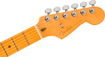 This Fender American Ultra II Stratocaster in Solar Flare is built for players who demand modern performance with unmistakable Strat style. It features a sleek, contoured select alder body finished in a high-gloss shine, paired with a quartersawn maple neck shaped in Fender’s comfortable Modern “D” profile. The Ultra Satin neck finish and sculpted tapered neck heel make fast position changes and upper-fret access effortless, while the 10"–14" compound fingerboard radius, rolled edges, and 22 medium jumbo frets provide a smooth, broken-in feel right out of the case. Premium appointments such as black pearloid dot inlays, Luminlay side dots, a Graph Tech TUSQ nut, and a Bi-Flex truss rod ensure stability, comfort, and precision across the full 25.5" scale length.