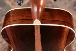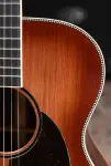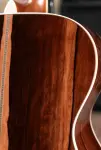 At the heart of this guitar is a sinker redwood top, prized for its quick responsiveness, rich overtones, and warm, broken-in character that feels vintage from the first strum. Paired with scalloped X-bracing, the top delivers excellent headroom while remaining touch-sensitive and expressive. The 000 body shape keeps the sound focused and articulate, offering clarity across the spectrum without sacrificing depth.